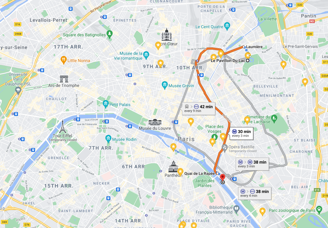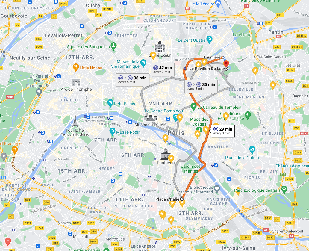 Il ricevimento si terrà nel ristorante Pavillon du Lac, dentro al Parc des Buttes-Chaumont.